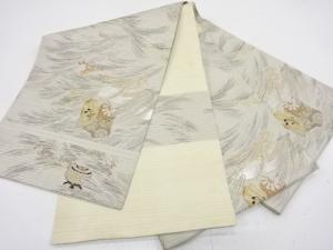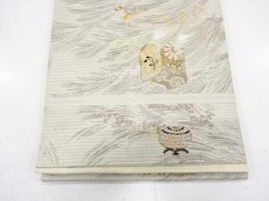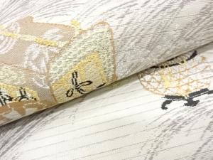 アンティーク 絽 御所車に虫籠・草葉模様織り出し丸帯(材料)