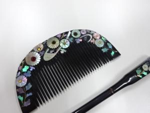 アンティーク 漆塗り螺鈿 櫛・笄セット