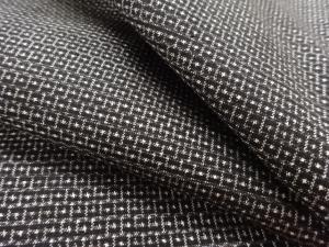 洗練された落ち着きのある色合いで、生地そのものは柔らかく、しわになりにくいと言われている。大島紬の特徴とも言える、織締めと呼ばれる技法で藍を用いて染められた糸を使用している。