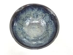 油滴とは「油滴天目」の略で、黒釉地に油滴に似た銀色または金白色の斑文が表れたもの。