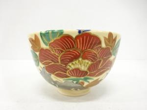 京焼 橋本紫雲造 金彩色絵 仁清写 牡丹文 茶碗