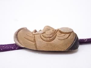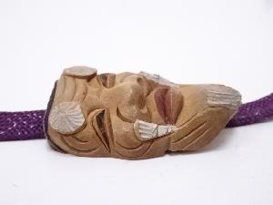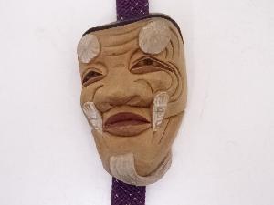 木彫白檀彫泥華陽二造 翁面彫帯留