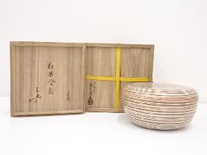 膳所焼 岩崎新定造 独楽喰籠(十一代無適斎書付)(共箱)