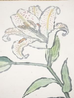 武者小路実篤筆 百合之図 肉筆紙本掛軸(共箱)
