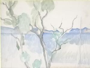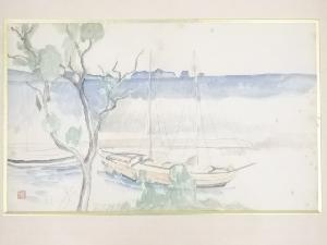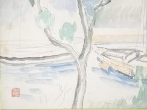 絵画 土田麦僊筆 「熊野風景」 肉筆額装(土田鏡子鑑定シール付)