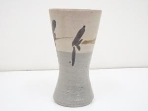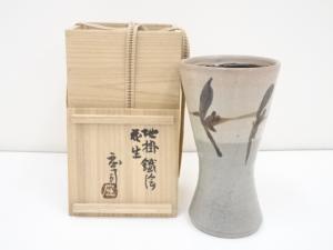 人間国宝 濱田庄司造 地掛鉄絵花生(共箱)