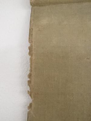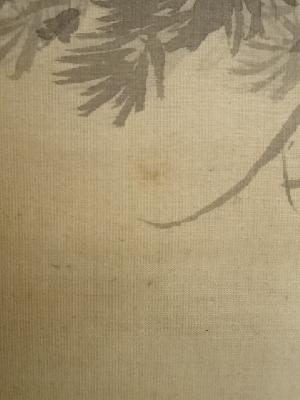 全体に経年汚れがあり、八双、軸棒付近に細かな虫食い、若干の破れがあります。