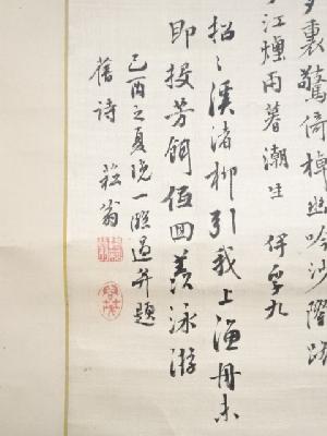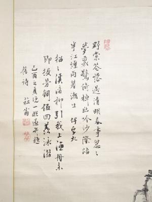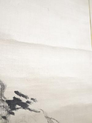 己酉(1849)年 貫名菘翁筆 臨伊孚九山水 肉筆絖本掛軸(保護箱)