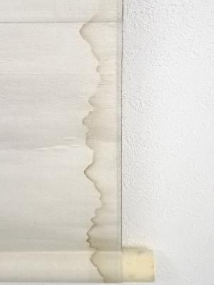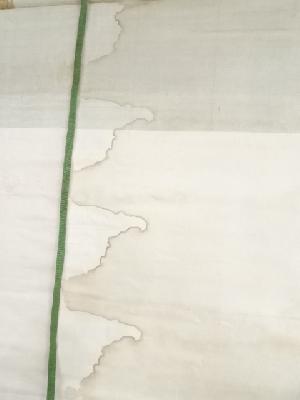 表具の端から、本紙の上部中ほどにかけて水によるシミがあります。