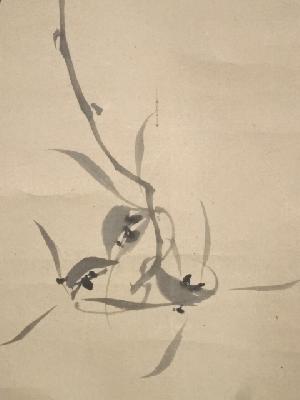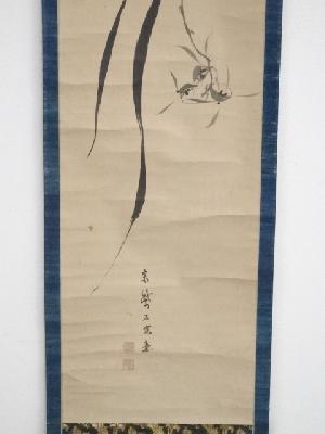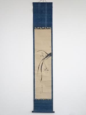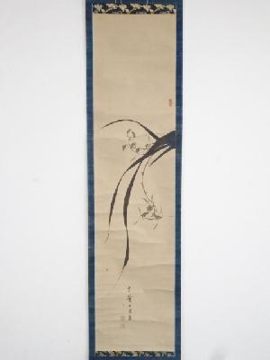 宋紫石筆 蘭図 肉筆紙本掛軸(保護箱)