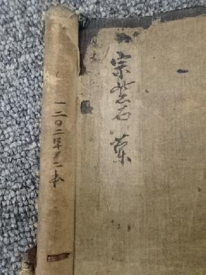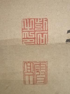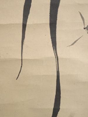 本紙にシミがあり、表具表下部、表具裏上部に汚れがあります。