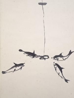斉白石 小魚都来 木版水印画 紙本掛軸