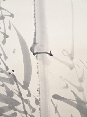 洪小南筆 墨竹図 肉筆紙本掛軸(保護箱)