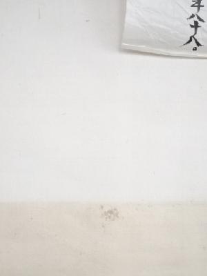 表具上部の端に若干の破れがあり、表具表裏ともに薄く汚れがあります。