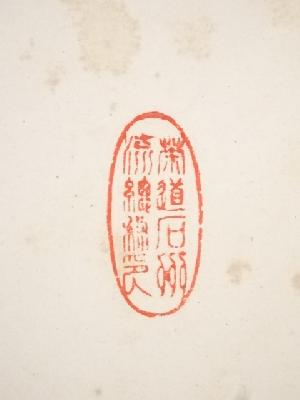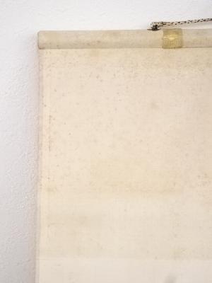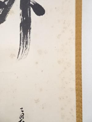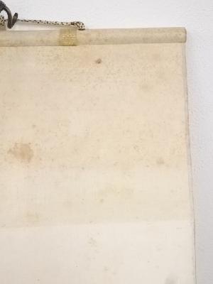 表具上部に小さな穴が空いており、本紙と表具裏にシミがあります。