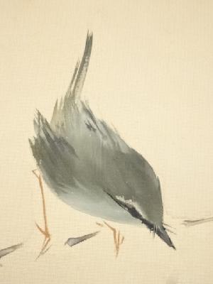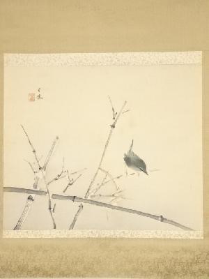 東原方遷筆 浅春 肉筆絹本掛軸(共箱)