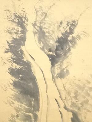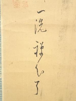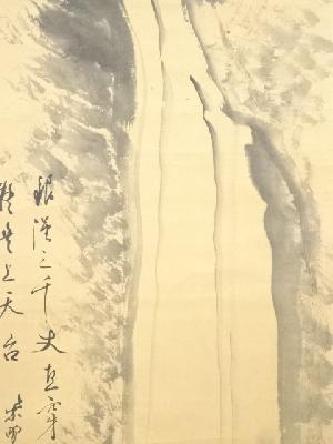 大徳寺486世宗般玄芳筆 瀧画賛 肉筆紙本掛軸(箱付)