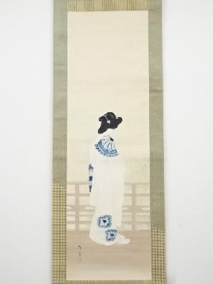 昭和8(1933)年 藤田秀堂筆 良宵之図 肉筆絹本掛軸(共箱)