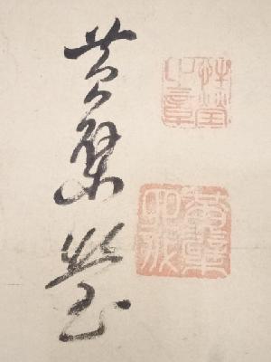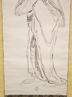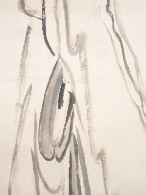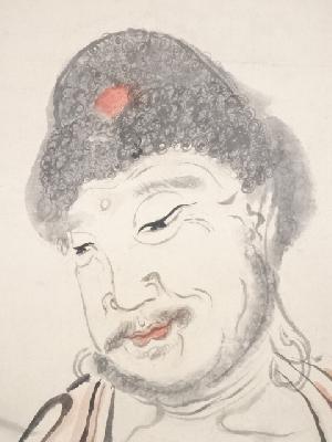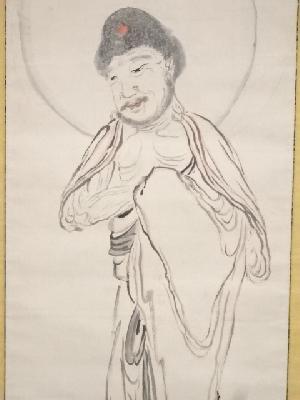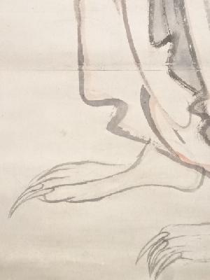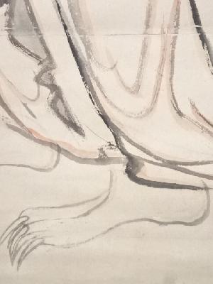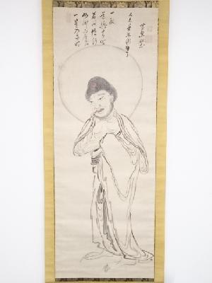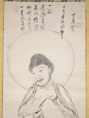 黄檗宗独湛性瑩筆 出山釈迦図画賛 肉筆紙本掛軸(保護箱)