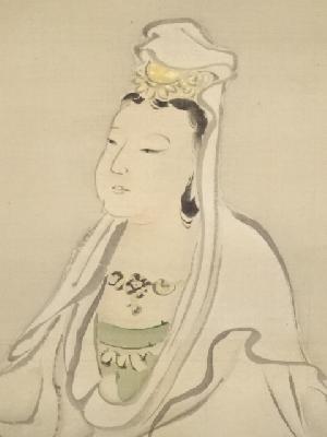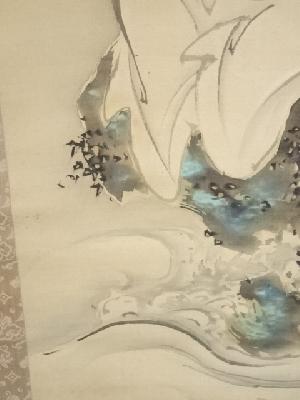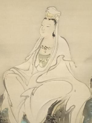 江戸中期頃 北山寒厳筆 岩上観音図 肉筆絹本掛軸(保護箱)