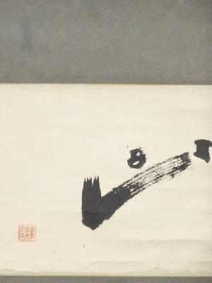 本紙に若干のシミがあり、表具裏にシミがあります。