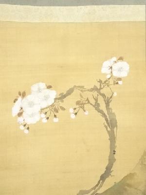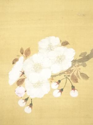 三熊花顛筆 桜図 肉筆絹本掛軸(保護箱)