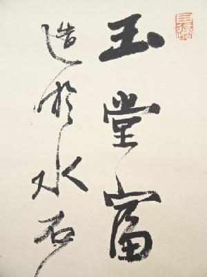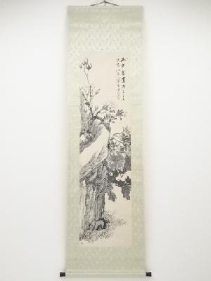 庚辰(1880年) 安田老山筆 玉棠富貴図 肉筆紙本掛軸(箱付)