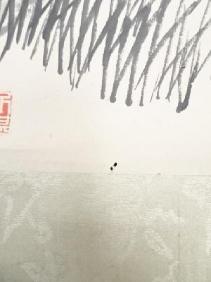 表具表に若干の汚れがあり、軸棒付近にシミがあります。
