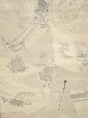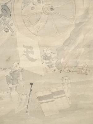 文久元年(1861年) 川崎千虎筆 大砲図 肉筆紙本掛軸(箱付)