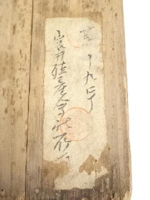 軸棒付近に汚れがあり、八双端に剥離破れがあります。