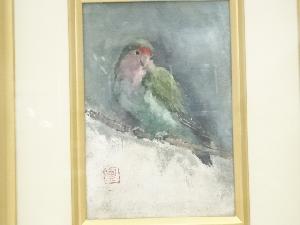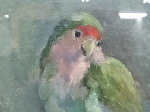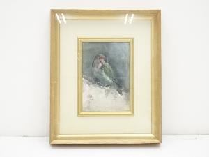 絵画 黒田重太郎筆 小桜いんこ 油彩 肉筆額装(黒田重太郎遺作展出品作)