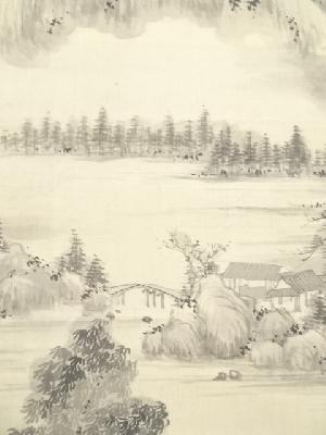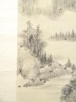 丁巳(1857年) 鉄翁祖門筆 水墨山水図 肉筆絹本掛軸(帆足杏雨箱書)