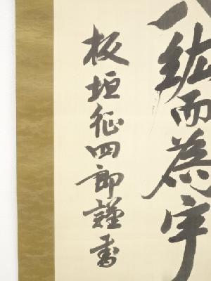 陸軍大将板垣征四郎筆 一行書 肉筆絹本掛軸