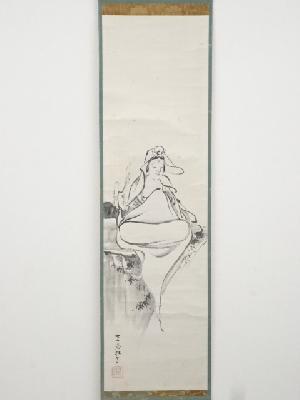 和田呉山筆 観音岩上図 肉筆紙本掛軸(箱書有)