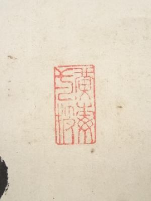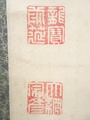 本紙に薄くシミがあり、表具裏上部にシミがあります。