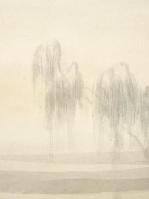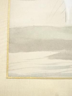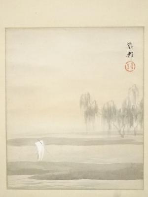 橋本雅邦筆 河畔図 肉筆絹本掛軸(橋本秀邦・寺崎広葉箱書・二重箱)