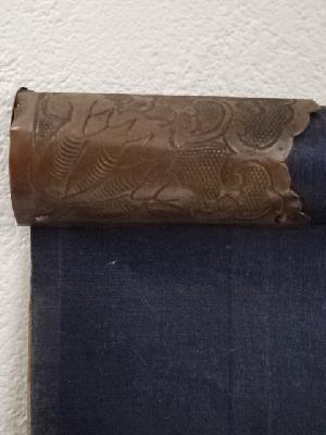 両方の帯部分に書き込みがあり、金具部分に変色があります。