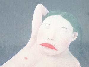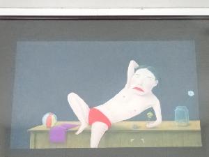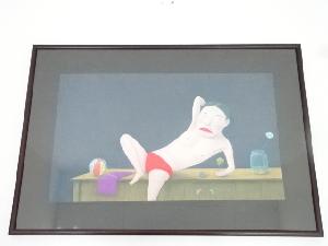 絵画 鷲見麿筆 「卓上のヒロイン」 肉筆紙本額装