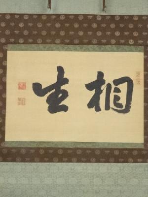 庄内藩七代藩主酒井忠徳筆 「相生」横物 肉筆絹本掛軸(保護箱)