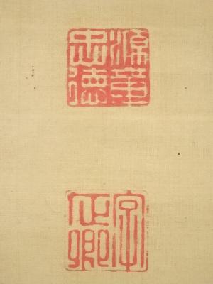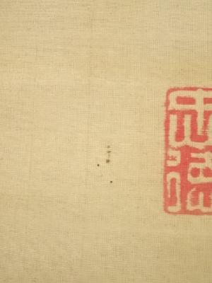本紙に若干のシミ、表具裏に若干の汚れがあります。