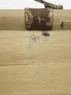 また、表具表上部、八双に虫食いがあるなど、全体に経年による汚れがあります。