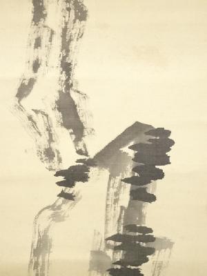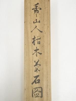 甲斐虎山筆 枯木菊石図 肉筆絹本掛軸(共箱)