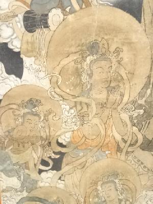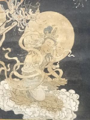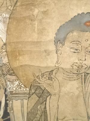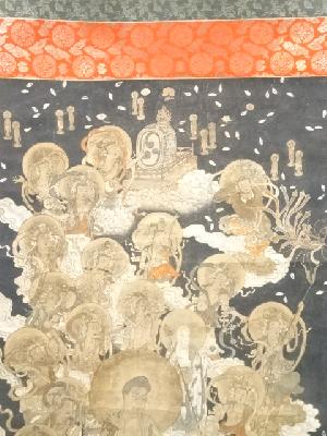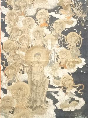 江戸時代 来迎図 木版彩色 紙本掛軸
