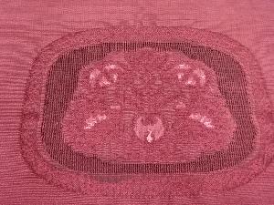 アンティーク 手織り紬孔雀に花更紗模様織り出し名古屋帯
