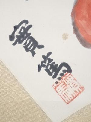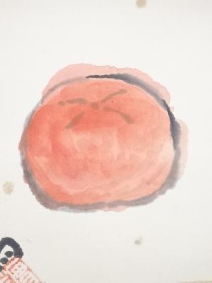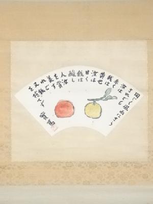 武者小路実篤筆 柿と柚 太巻 肉筆紙本掛軸(共箱・二重箱)