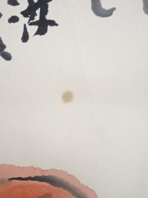 本紙のところどころにシミがあり、表具表裏にもシミがあります。