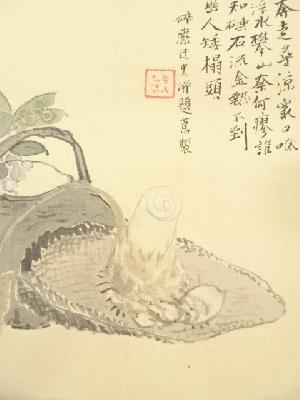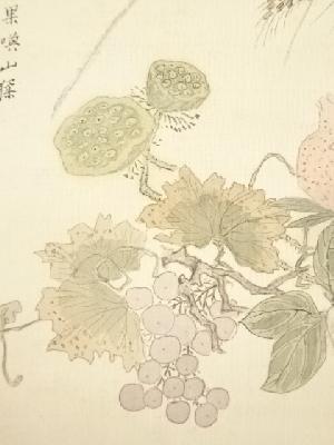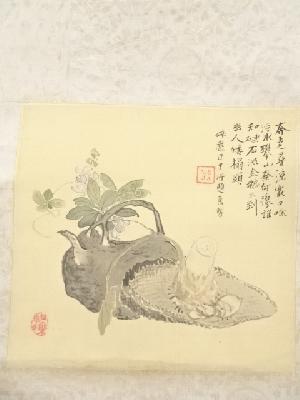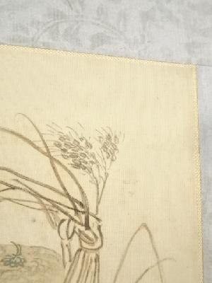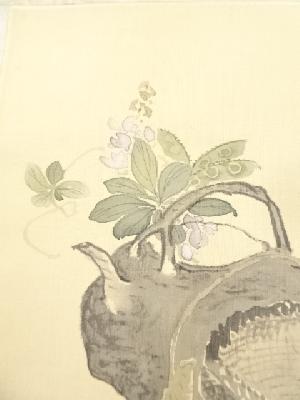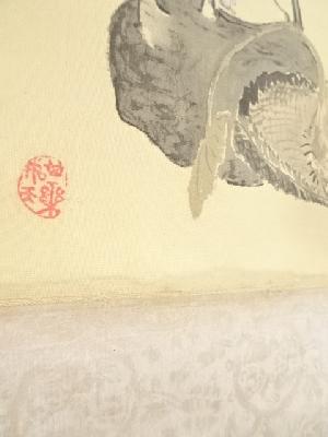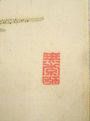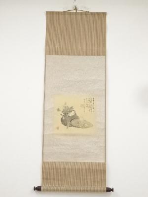 高森砕巌筆 草花図双幅 肉筆絹本掛軸(保護箱)