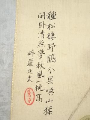 2枚とも本紙と表具にシミがあり、巻きあとによる皺と折れがあります。