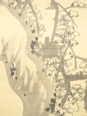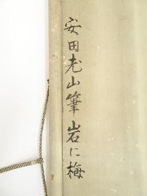 丙子(1876年) 安田老山筆 梅岩図 肉筆絹本掛軸(保護箱)