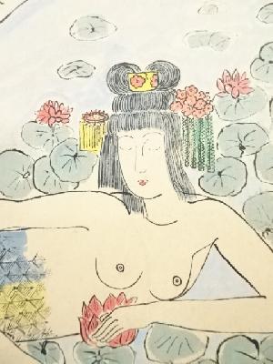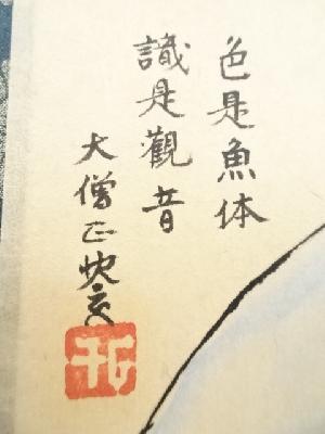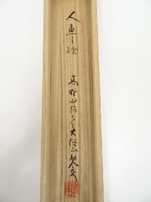 高野山建部快運筆 人魚の絵 肉筆紙本掛軸(共箱)